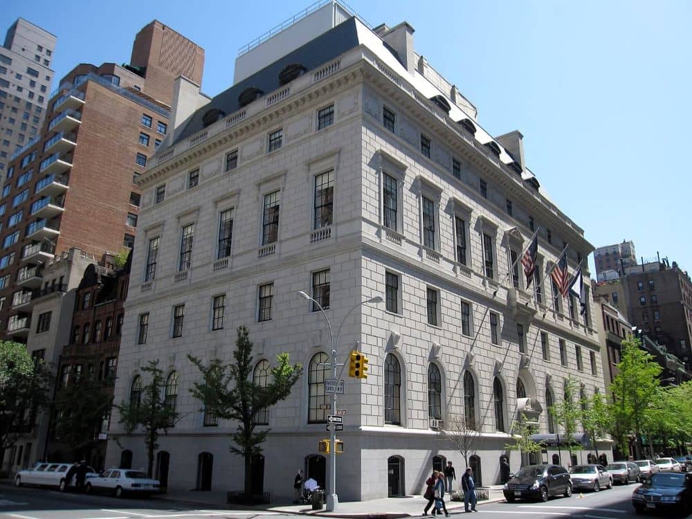 The union club is now located at the intersection of 69th Street and Park Avenue and is open to all genders. All patrons of the club must abide by a dress code – men must wear jackets and ties (in almost all parts of the club) and women must wear suits, dresses, or tailored pantsuits. For the squash courts, white clothing and collared shirts are required. If a guest is not properly dressed, they’ll have to enter from the 69th Street service entrance. Much like many private social clubs, the usage of handheld electronic devices is strictly prohibited in all common areas. Guests who wish to place calls must use the telephone booths located throughout the building. Membership to the Union Club is said to be $5,000 a year and is by invitation only.